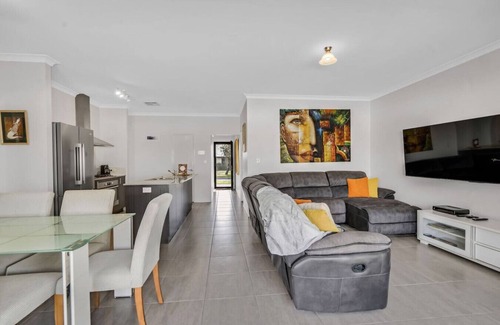 this 3x2 home is set up for relaxed, comfortable living Each of the three bedrooms has a queen bed and built-in robes; the master enjoys its own ensuite, while the main bathroom includes a full bathtub for a long soak after a day out. The living room invites slow nights with a Smart TV and fast, free Wi-Fi, and a proper laundry (washer and dryer) keeps longer stays simple. When the mood turns playful, head to the mancave for darts at the board, a seat at the bar, and a little nostalgia from the memorabilia.