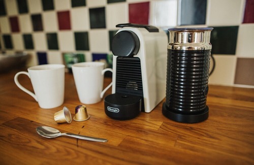 the kitchen is well supplied and includes a nespresso pod coffee machine, microwave, dishwasher, bar fridge, full size fridge as well as 800 electric oven and gas cooktop