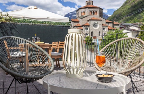 appartments al pomodoro biasca is a beautiful, cosy vacation rental apartment house situated in the center of biasca, switzerland It offers a sunny and central location, with amenities like a yard, internet WiFi, and the option for an installment plan. The property features two storeys and is a part of a house with a restaurant. Motor access to the house is available, and public parking is within a 30-meter distance.