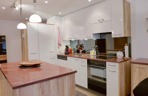 the apartment is equipped with modern amenities to ensure a comfortable stay The kitchen is open and well-appointed, featuring an oven, dishwasher, four ceramic glass hob hotplates, a toaster, kettle, microwave, freezer, and an electric coffee machine with Nespresso capsules available for purchase. Additionally, you'll have access to a raclette grill and a fondue set for a truly enjoyable culinary experience. The bathroom is fitted with a shower and a toilet. The apartment also benefits from underfloor heating, ensuring a cozy atmosphere throughout your vacation.