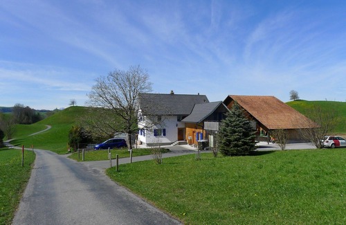 the hirzel property is a cozy single-family house situated 680 meters above sea level, nestled amidst meadows and fields Constructed in 2005, this vacation rental offers a serene retreat with amenities including a yard, internet WiFi, and parking on site. Enjoy the convenience of having direct motor access to the house and a storage room for bicycles within the premises.