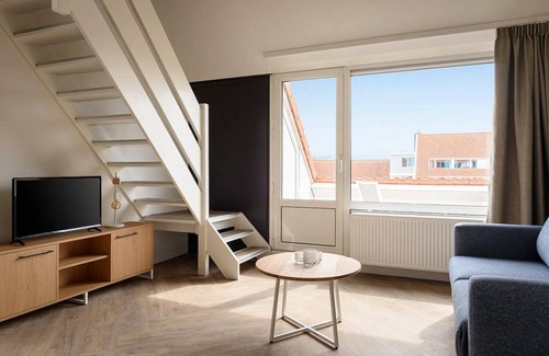 This cosy apartment is perfect for two guests looking to enjoy both relaxation and adventure. Inside, you’ll find a modern living room with a comfortable seating area, smart TV, and dining space. The kitchen is fully equipped with a fridge and freezer compartment, combination microwave, dishwasher, and a Senseo or Nespresso coffee machine—ideal for preparing meals at your own pace. A staircase leads to the upper level, where the inviting bedroom with two single box-spring beds awaits. The bathroom features a walk-in shower, washbasin, and toilet. Step outside to a furnished balcony, a lovely spot to unwind with fresh air and views of the surroundings. Free Wi-Fi and convenient parking are included. Beyond the apartment, the holiday park offers a wide range of activities and entertainment for all ages. From fun sports and games to lively seasonal programmes with activities for children, there is always something to enjoy. The nearby saltwater lake provides endless opportunities for water sports, including sailing, windsurfing, swimming, or simply relaxing by the shore. The surrounding region is perfect for nature lovers, with vast dunes, sandy beaches, forests, and open landscapes to discover. You can set out on cycling trips, hikes, or even horse rides to explore the beautiful countryside. Exceptional birdlife and unique natural areas make it a paradise for outdoor enthusiasts. Charming villages and towns nearby invite you to explore local history, culture, and cuisine. Fresh seafood, small harbours, historic streets, and welcoming cafés make every outing memorable. For a day by the sea, wide sandy beaches and lively beach bars offer the perfect setting for relaxation or adventure. Families will also enjoy fascinating museums and child-friendly attractions, making this destination as educational as it is entertaining.