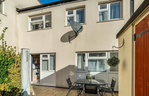 step outside to the sociable back garden The space is equipped with contemporary outdoor furniture, making it ideal for unwinding with a cup of coffee or enjoying a peaceful evening with loved ones.