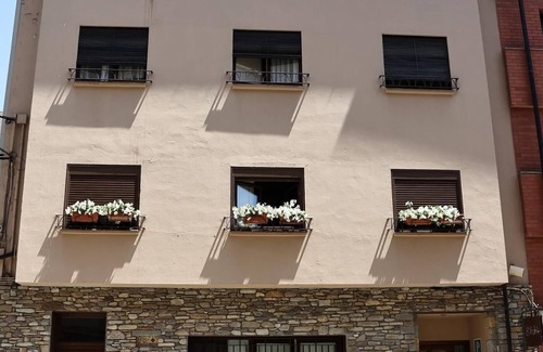 spectacular rustic flat of 127 m² with four double bedrooms, adaptable to both single and double beds The accommodation has two full bathrooms, equipped with WC, washbasin, bathtub and bidet.The flat includes a 10 sqm terrace, furnished with table and chairs, and a small extra room which houses the washing machine. The kitchen is fully equipped with crockery, oven, microwave, toaster, dishwasher, fridge and freezer, as well as a pantry and cupboards for storing food and utensils. There is also a spacious dining area with a TV.The Vall de Boí Spa and some of the famous churches and hermitages in and around the valley are just a 10-minute drive away. Activities in the area include skiing, mountain biking, hiking and rafting. The flat is well connected with the Vall de Boí, the Vall d'Aran, the Vall de Benasc and the Vall de Barrabés, offering views of the Aneto, the highest peak in the Pyrenees. In El Pont de Suert there are shops, swimming pool and restaurants. The flat also has ample outdoor parking space.