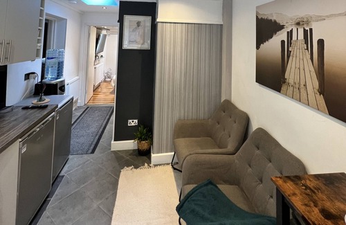 Refurbished private 1 bed studio apartment in the guest wing (annexe) of a friendly family, available for short term. Contact the host for details for 2 bed studio.