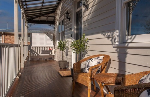 the maid oozes charm With it's glowing gas log fire, cosy couch, Apple TV, free WiFi. Fully equipped kitchen with oven, gas hot plate, microwave and coffee machine. Complimentary tea, coffee and port. The bathroom incorporated a walk in shower, heated towel rail and heated floor, washing machine and dryer. The original polished floors add to the beautiful character of the studio. The Maid has it's own courtyard and veranda seating. There is also dedicated off street parking. The entry key is located at the front door in a security box. sensor lights and torch guarantee good vision if arriving late at night