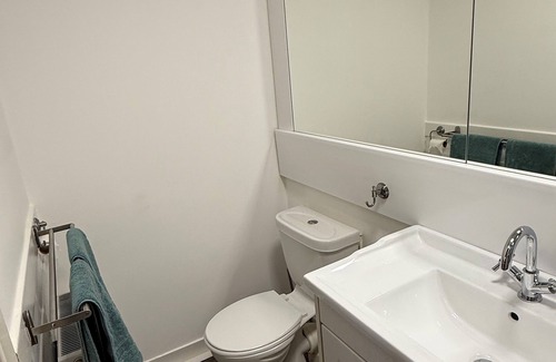 Relax in this peaceful apartment with a tranquil atmosphere. Self contained space, with a connection to the outdoors. Cosy, nature inspired interior elements with natural light, wood finishes and views of the Campsie Fells.