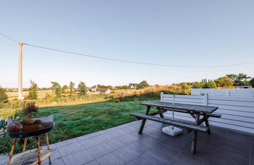 this cottage features a private terrace with a barbecue Additionally, guests enjoy access to a shared garden and a petanque court.