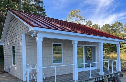 it was recently completely renovated from top to bottom Sit on the dock and admire views of the creek or step just inside the massive 3 pane glass door and do the same.