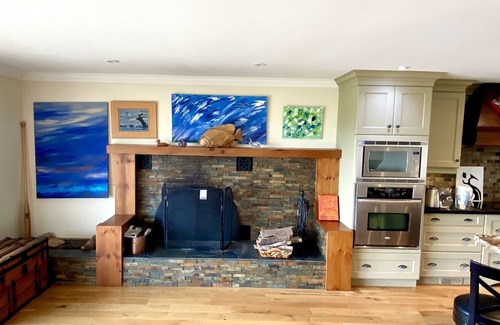 easy access to ski hills, art galleries, coffee shops, beaches, restaurants, stores and lovely shops Our cottage is warm and cozy in the winter. Cool & breezy in the summer located on the escarpment which keeps the bugs away. Casual comfort and style, beautiful art and lots of towels. Fantastic views, especially when you can enjoy a meal outside on the deck. The kitchen, living room and deck are on the upper level. The master bedroom, blue bedroom room are located on the main floor. The yellow bedroom is a few steps lower and the single bed, TV, Infrared sauna, ski machine and kids games & books are in the basement.