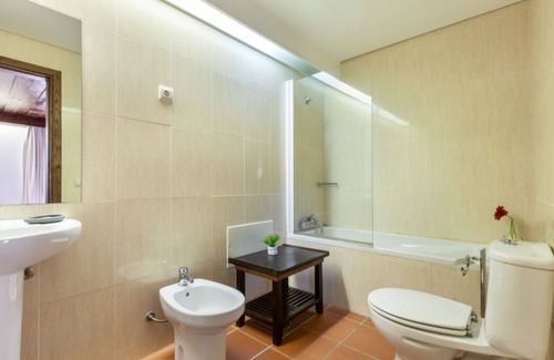 with capacity for 12 people (+ 3 children), it has 6 bedrooms all with private bathroom, living room (with snooker table, wifi, tv, satellite channels, dvd player, etc), fully equipped kitchen equipped (electric hob, oven, dishwasher, fridge, freezer, microwave, etc.), swimming pool, outdoor dining area with barbacue and private parking. In addition to beds for 12 people, we also have 3 air mattresses available (we accept reservations for up to 15 people since 3 of them do not mind sleeping on air mattresses), we also provide bedding for air mattresses (please advise me before check-in should you need any mattress). The house already has sheets and bed linen such as toilet towels and toilet paper. The kitchen is not equipped with food. The cleaning and maintenance of the pool is made by the owners.