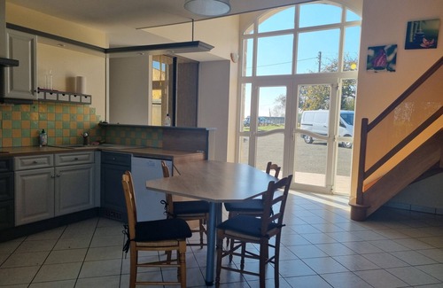 - ground floor: large living room (tv + hifi) with fireplace, a fitted kitchen (oven, mini-oven, hob, microwave, 2 fridges, dishwasher, coffee maker, kettle ...) open to living room, 1 bedroom with 1 bed 2 people, toilet, shower room, utility room with washing machine and dryer.