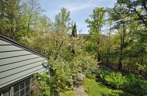 This lovely spot is just over a mile from the Woodstock Town Green, situated on a small road, nestled into a hillside, where you can watch the leaves change during the day and enjoy a cozy wood fire at night. A real feeling of privacy. Lots of room inside and out for relaxation. The grounds are an interesting combination of lawns, rock gardens, expanses of wood decking and stone work, sheltered nooks, and patio spaces—all designed informally around a fantastic in-ground heated salt water swimming pool. (Pool season is approximately from the end of May through September 15..)