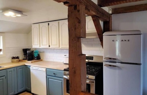 a former working dairy farm, the house has been painstakingly restored by the owners The rustic farmhouse has been outfitted with modern touches while keeping the charm and character of the farm. the entry to the house is the original home on the property from the early 1800's