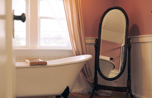 the centerpiece of the suite is its spacious spa-inspired bathroom, complete with a classic clawfoot tub and elegant finishes that invite long, lingering soaks Slip into plush robes and let time slow down.