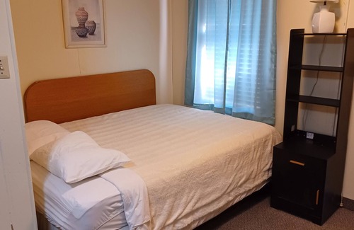 room 5 is equipped with one queen bed, mini fridge, microwave, coffee maker, tv, and bathroom It is perfect for one to two guests..