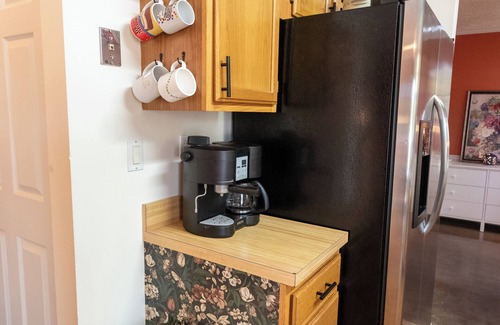 the kitchen is stocked with everything you need to feel right at home Extra dishes, family-sized pots & pans, food processor, blender, slow cooker, hand mixer, good knives, etc. make it easy to cook as you would at home. Whether you’re cooking a family meal or preparing a quick snack, you’ll find plenty of extras to make your experience enjoyable.