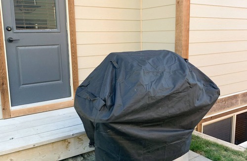 this home has a fully equipped kitchen (propane bbq, coffee machine, coffee grinder, soda stream, toaster, ninja air fryer, rice cooker, oven, microwave, ice maker, filtered water, grilling tongs, wine opener, full set of knives, kids dishes, wok, all pots, pans, and utensils) There is coffee and tea for you to enjoy. We also keep it stocked with basic condiments and spices.