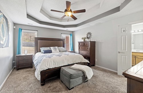 Your cozy getaway awaits in Olive Branch at this beautiful house. With 4 bedrooms, including 1 king bed and 3 queen beds, there's plenty of space for you and your guests to relax and recharge. Home has a large backyard, garage parking and a laundry area for guest. The house also features 3 bathrooms, complete with a bathtub and hair dryer for your convenience. Plus, there's an additional office space with a comfy sofa bed. You'll find everything you need here, from an iron and hair dryer to AC, heating, a washing machine, and WiFi. It's easy to see why you'll be able to unwind at our place..
