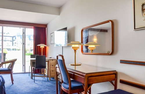 The apartment in Palæ Marienlyst is located near the center of Helsingør. It is on the ground floor and has a direct exit to a nice terrace. The interior is bright, practical and tasteful, it is well suited for a couple. You can take a shower in the bathtub of the bathroom. An ideal holiday apartment for a couple. On the first floor you will find a common washing machine and an ironing board for a fee. The nice, small kitchen of the apartment offers exactly what you need on vacation.