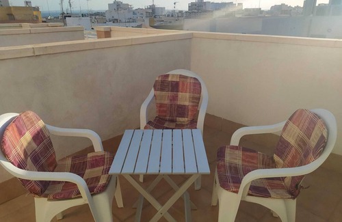 Apartment in downtown area of 51 m2 (including solarium and storage room), with kitchen (fully equipped: ceramic hob, washing machine, fridge, microwave and small appliances) living room that has sofa and armchair bed, bathroom and a bedroom (with bed of 1.50 m). With air conditioner. It is 250 m from the beach and 170 m from the Castle and the center. Maximum 3 people (ideal for a couple with a child. Included linen and towels.