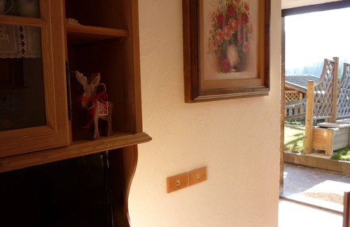 il soggiorno ha un televisore ampio con satellite tv 2 ripostigli anche per sci. Ampio parcheggio privato. Giardinetto privato antistante l'appartamento con tavolino e sedie.