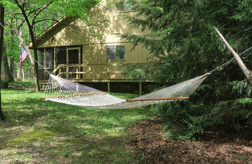 This is a Cozy Cabin in the quiet woods at the end of a cul-de-sac in Clifftops on top of Monteagle Mountain.