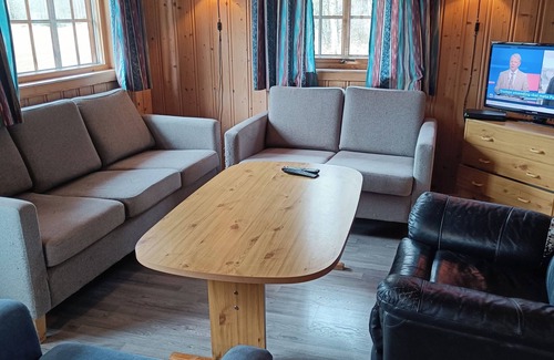 koselig hytter 8 minutter til Bjørneparken, familien vennlig, god plassering med utsikt på fjellene. Gjestene tar med sine egne sengetøy og håndklærtil hytte, utvasking av hytte er ikke inkludert i prisen ..