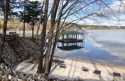 This unique Vacation Getaway is located on Beautiful Lake James at the base of the Blue Ridge Mountains in Western North Carolina. The waterfront cabin is the perfect place to Relax and enjoy the beauty and Sounds of Nature! Here you will enjoy your own Private White Sanded Beach equipped with Chairs where you have the options to Fish, Swim, Kayak, Pedal Boat or soak up the sunshine. As a guest you will have unlimited access to (2) paddle boards, (2) Kayaks and a 5 person Pedal Boat during your stay. The property has its own covered boat slip/dock with Rocking Chairs for your use and enjoyment. Also there is a hammock, gas grill and a Fire pit (wood is provided).