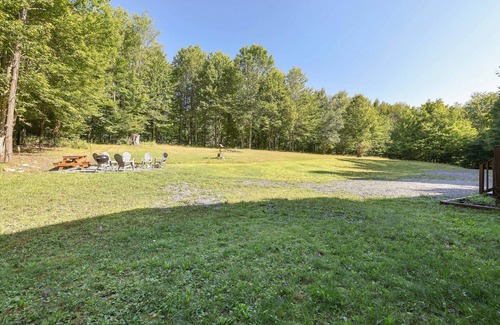relax with family and friends at this peaceful cabin with 8 acres to do all sorts of outdoor activities! with a great view from any area in the house, cuddle up near the fireplace to watch tv after a long day of fun There will be plenty of room with four bedrooms and two bathrooms with a spacious kitchen and living room. Feel like stargazing? Have a campfire right near the house to enjoy the beautiful night sky! Enjoy the covered deck to continue the fun even if it's raining! ( no extra guess allow).