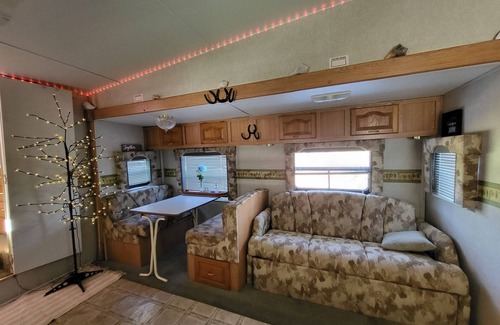 this camping experience with our cozy rv is hosted on a 10 acre wooded lot just 10 minutes from rainbow springs park for kayaking, fishing, tubing and site seeing!