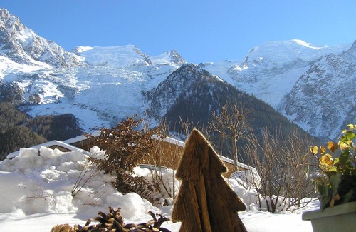 this chalet (6 persons) offers an exceptional view over the mont-blanc particularly over the bossons glacier