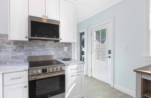 modern kitchen: a fully renovated kitchen perfect for staying in and cooking your favorite meals!