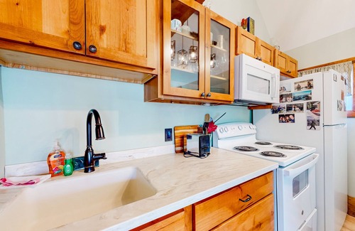 at-home comfort abounds with oil-heated baseboards and a free-standing gas fireplace providing plenty of warmth even through the coldest winter months The full-size kitchen is more than equipped for culinary convenience. Additional perks include free WiFi, board games, and a TV.