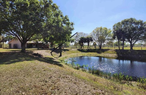 Spacious Country Cottage situated on 8 acres of land with a large pond. Home can accommodate up to 10 guest. Lots of parking for cars, trucks, boats and RVs. A fisherman/hunters delight with on-site cleaning area and a walk-in Smokehouse! This is a MUST SEE beautiful, manicured property located 3 miles from the Kissimmee Prairie State Park and Preserve. Equestrians you can tour the 54,000 acre prairie horseback. The Equestrian Park was recognized as Florida's First Dark Sky Park, where you can see the Milky Way. The area outside of the Park has a ton to offer most any outdoor enthusiast. There are recreational vehicle areas and wildlife management areas less than a mile from the property. Hunt or fish with your airboat in the nearby Kissimmee River. this property is the perfect place to bring the family and pets!