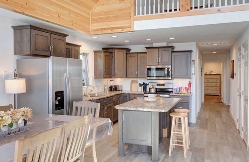 When you arrive to our beautiful WILDBERRY BRAND NEW COZY CABIN HOME you will drive up a long driveway with the Catskills Mountains as your backdrop! The Mountain View’s are Amazing! You will arrive to our 3 bedroom/2 bath Chalet Country Home! You will step onto our beautiful large wrap around deck and into country bliss! When you walk into the home you will enjoy the large open floor plan where family and friends can sit around the cozy fireplace while making a gourmet dinner for all! The open floor plan includes the kitchen, dining area and living room! When you open the French doors from the living room onto the large deck you will see the amazing views of the Catskills Mountains! You can see Mountains for miles! Beautiful brand new chalet home. 3 bedrooms/2 baths close to windham mountain/hunter mountain - sit with family and friends around the gas fireplace or enjoy the beautiful catskills mountains views around the firepit outside!