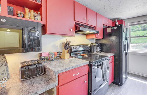 outdoor living: back deck w/ outdoor dining tables, gas grill (check fire ban), creek on-site, furnished front deck, private balcony for bedroom 1