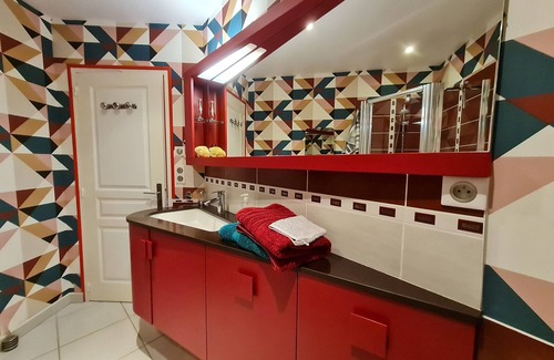 The Eglantier Room features a 160x200cm double bed and a comfortable 140x190cm sofa bed for two, as well as a bathroom (shower, vanity, toilet). A small private terrace in front of the room allows you to enjoy the outdoors on sunny days. This site is at the heart of a tourist hotspot: Château de Sully, Basilica of Saint-Benoît, Oratoire de Germigny, the Loire Valley, and the Orléans Forest. A single-story room, named L'Eglantier, is located in the old farmhouse, decorated with bright colors. Private parking. Bicycles are available for loan. A summer kitchen with a refrigerator, microwave, and dishes is available. Tourist tax: €0.50 per day per adult over 18.