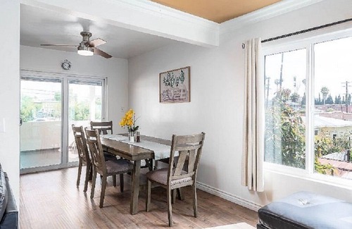 Consider this apartment your home away from home while you visit Inglewood. This amazing property features 2 bedrooms with a king and queen bed, perfect for a small group of guests. Enjoy the convenience of amenities like heating, WiFi, and a washing machine during your stay. With 2 bathrooms equipped with hair dryers and showers, you'll feel right at home. Fall in love with Inglewood and enjoy the magic it has to offer. 60 inch Samsung smart TV in living room and 55 inch television in bedroom. Coin operated washer and dryer, gated complex for one car in carport, key-less entries so no keys to lose, check out the website 545 Happy Place for further details..