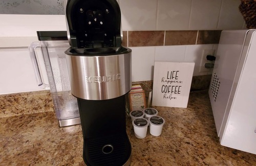 in the suite, you can relax and enjoy all the amenities of home including comfortable & clean furniture, fresh linens, a smart tv, full size stocked kitchen, and a convenient laundry center