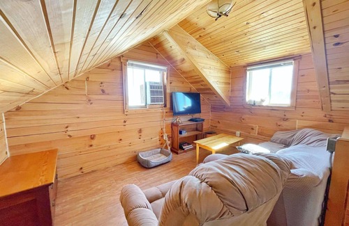 This Amish built cabin is the perfect place to unwind and enjoy Beautiful sunsets. It's perched wonderfully on the top of an open prairie in rural Iowa. The views from every room in this cabin are Amazing! Watch the sunrise with a cup of coffee from the east, there's amazing prairies and forests to the south, phenomenal sunrises to the west, and fun woods to explore to the north. Nestled on a quite country road, if you're looking for a great get-away with unlimited hi speed wi-fi, you found it here:).