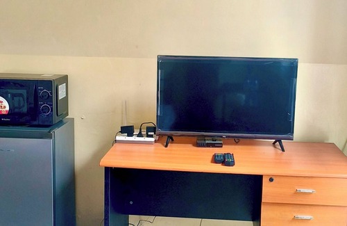 the room is equipped with a microwave, electric kettle, fridge, and toaster, allowing you to prepare delicious meals and snacks Enjoy the fresh air on your private balcony, where you can take in the sights and sounds of the city. While there is no parking available, you can easily explore Kinshasa on foot or by public transportation.