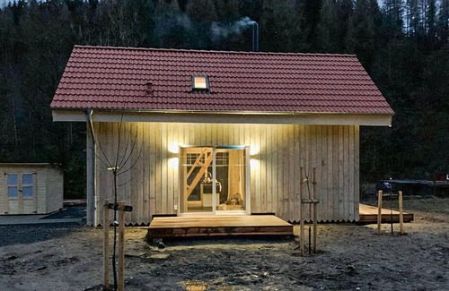 from this characteristic vacation cottage you can make beautiful trips in and around the harz mountains Inside the house you will find great panoramic windows and a good room layout with everything you need for a vacation. On each side there is a terrace for romantic meals and sunset watching. Buy fresh bread at the bakery and enjoy your breakfast on the open terrace. Walk only 200 meters and start your hiking or biking adventure. On the way back, take home fresh fruit for snacking and cake for dessert, and in the evening, cozy up on the sofa with a bottle of red wine while the flames crackle in the stove.