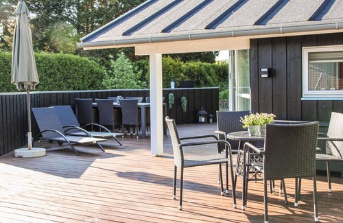 enjoy your vacation in this cozy and friendly vacation home The layout of the house invites you to spend time together in the living room. Relax on the sofa, read a book or get together to play board games at the dining table. Step out onto the large wooden terrace, which is partially covered but also offers large areas for barbecuing in the evening or sunbathing during the day. Let your children discover the garden, watch you play ball and look forward to your upcoming excursions.