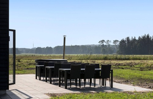 in gjerrild, not far from the nearest sandy beach, you will find this modern holiday home that combines style, comfort and plenty of entertainment options There is room for several families or a larger group of friends in this holiday home. Start your day with a relaxed breakfast at the large dining table in front of the open-plan kitchen, which is equipped with everything you need. Large windows provide plenty of natural light and give you the feeling of being surrounded by nature.