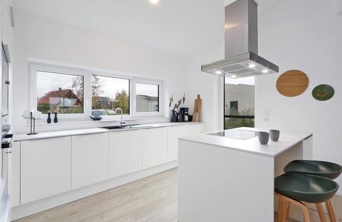 welcome to your holiday home, which offers you as a family with children or as a group of friends a cosy, homely ambience with scandinavian-style furnishings Thanks to the private indoor pool and sauna, a touch of luxury wafts through this house, whose living and dining area on the first floor welcomes you thanks to the open gallery with loft character. The open-plan kitchen invites you to cook and linger, while you can always find a sunny spot on the two terraces Up to 10 guests will always find enough privacy here, thanks to 5 bedrooms and 4 bathrooms. The furnishings in Scandinavian design are of high quality throughout and leave nothing to be desired.