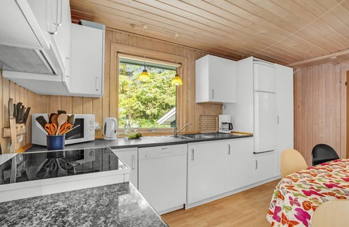 welcome to your holiday home on lyngs strand, which offers you the typical danish summer house atmosphere Surrounded by nature, it offers the ideal setting for a relaxing holiday with the whole family. The house welcomes you with a cosy ambience characterised by wood. The contemporary but simple furnishings ensure comfort and a relaxed atmosphere. Enjoy your meals in the inviting open-plan kitchen and the adjoining living area or make yourself comfortable with a book in the cosy sitting area.