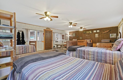Unwind in Ellijay at this delightful cabin. This cozy retreat features 1 large open plan bunk-style room with 6 comfy twin bed, and easy access to two nearby bathhouses with showers, and amenities like heating, AC, WiFi, and a hair dryer. Perfect for a group of friends or a family looking for a peaceful getaway. have a big group? reserve both koi cove and pond nook together to have two semi-connected buildings that sleep up to 11! fall in love with ellijay and enjoy the magic it has to offer!