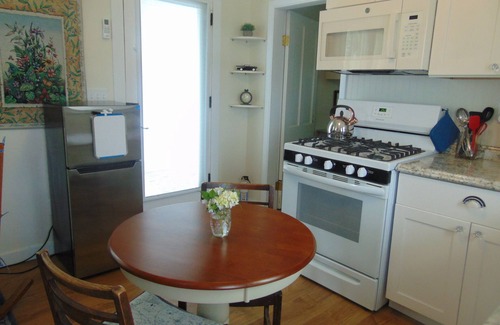 Relax in your own quiet little oasis on our hazelnut farm. Our small cozy cabin is perfect for one, or two who enjoy togetherness! This renovated old "summer kitchen" stands next to the 1880's farmhouse, and was originally used for wood stove summer cooking before electricity was available. About the size of a large doll house, or playhouse, it measures 12' x 25'. Also enjoy your own outdoor patio space, on our 40 acre family hazelnut farm, with views of the barnyard, farmland and orchard. Full kitchen with dishwasher, microwave, and gas range. Bedroom w/ queen bed, wardrobe and desk. Bathroom with shower. Dogs allowed on leash only, as there are chickens and kitties living on the farm..