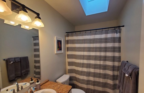 Enjoy this mid century modern home warming yourself next to the gas fireplace or cool down in the air conditioned space, where you can cook on the natural gas range using all the amenities you enjoy in your own home and more. Each bedroom has its own unit to set the room to your perfect temperature. The queen beds have premium quality mattresses with nice heavy duvets and memory foam pillows so you can wake up refreshed for a walk downtown Courtenay to enjoy the excellent selections of coffee shops, restaurants and breweries after a day of skiing on Mount Washington or Mtn biking in the Cumberland Forest. Or just lounge on the couches and enjoy a movie on the smart TV..